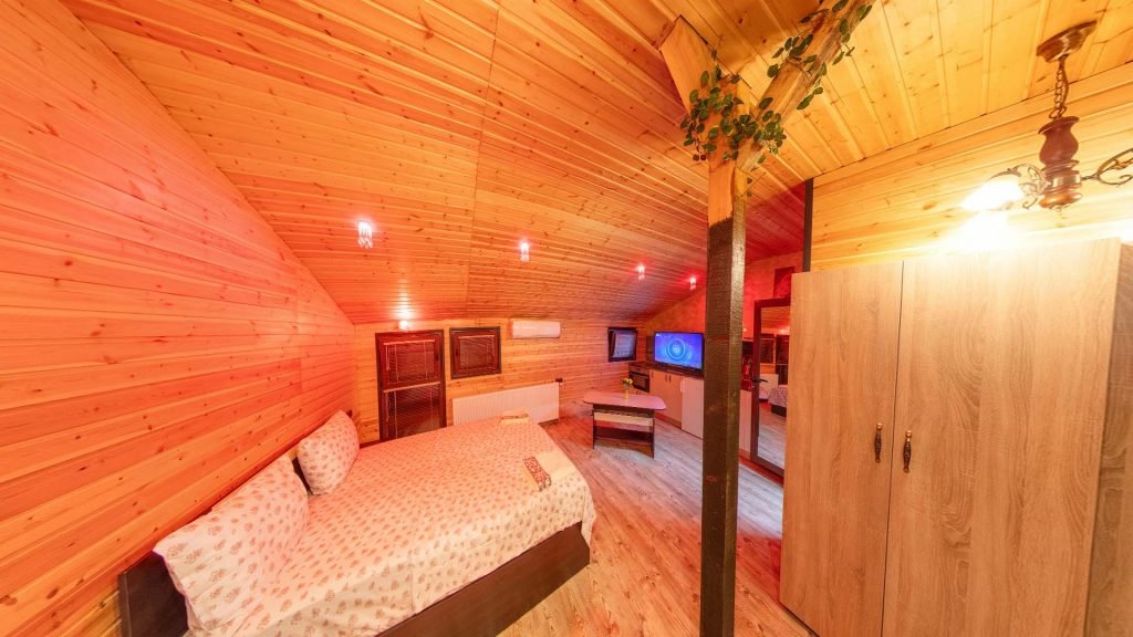 Стаята в бутиково изпълнение ще ви впечатли с топла и уютна атмосфера с включени всички необходими удобства за комфорта по време на Вашата почивка.